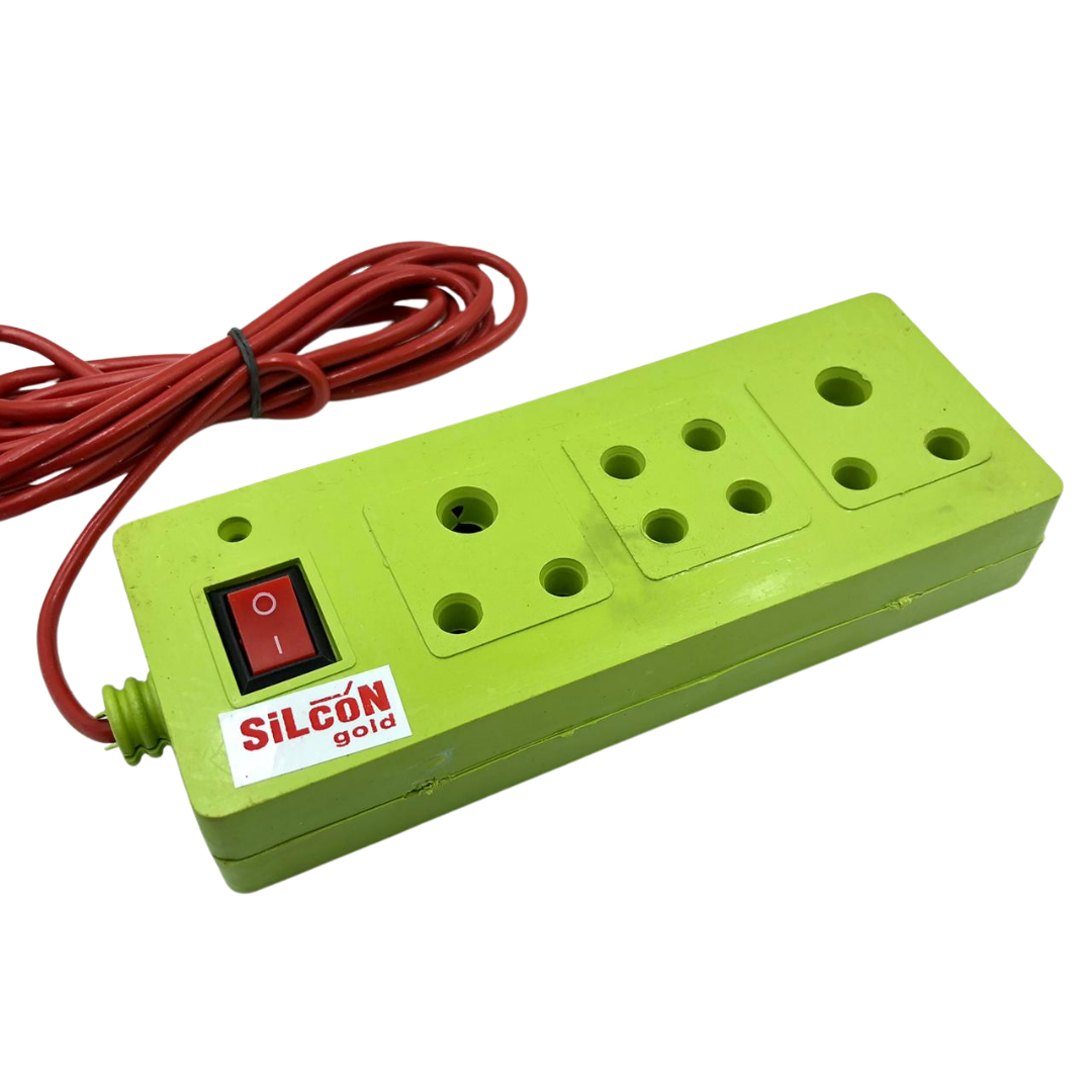 3 Socket Extension Board with 2.5 Meter Wire, 2×3 Pin + 1×2/2 Pin Universal Socket