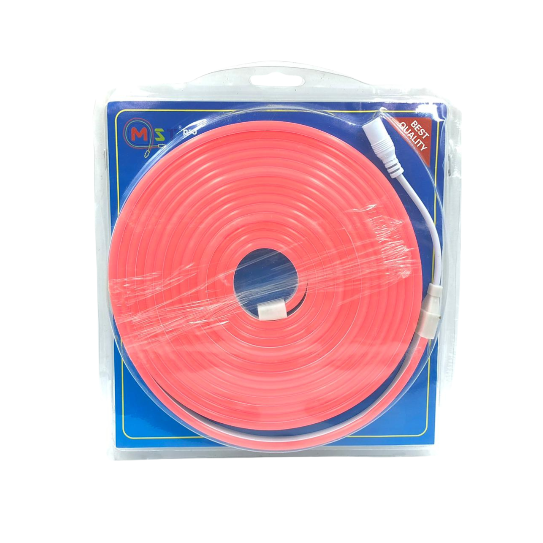 - This Neon Flexible LED Strip Light is flexible in nature and comes in multiple color options. These lights are made to operate in both indoor and outdoor environments. They are waterproof and run on a 12v power supply which can be provided using an external power supply or adapter. The product can also be cut at any length using a scissor, this feature gives more flexibility to its user.
