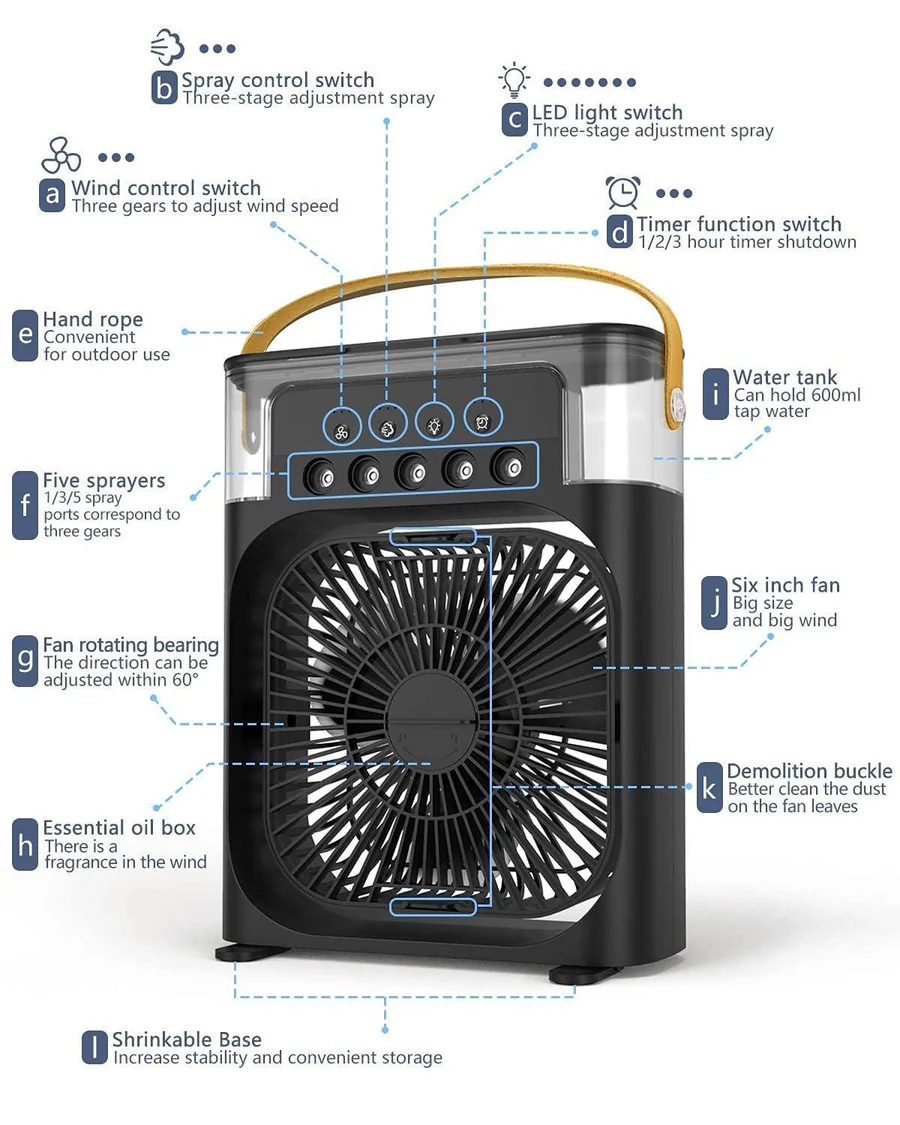 Beat the heat and stay refreshed with our Portable Mini Evaporative Air Cooler! This compact and energy-efficient cooler is designed to provide instant relief from hot temperatures, making it perfect for small spaces, offices, or outdoor activities. With its 7-color LED light, it not only cools but also adds a touch of style and ambiance to your surroundings.